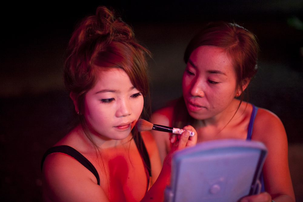 Close to the Thai-Lao border, Laotian ‘hostesses’ wait patiently for clients outside their karaoke bars. Business is slow in the rainy season; competition is fierce among the many bars in that small area. “There is a clear spectre of hope,” says Jarutawee, “nursed with infinite patience by the act of continuous waiting.”