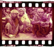 Inside the trunk there are about 50 rolls of black and white negatives and hundreds of slides, all in a state of decay, the melted film sticking to the plastic sleeves. Some pieces had curled up and bent and crumbled on contact. These photos were taken between late 1979 – 1983 and are mostly of Khmer refugees on the Thai-Cambodian border.